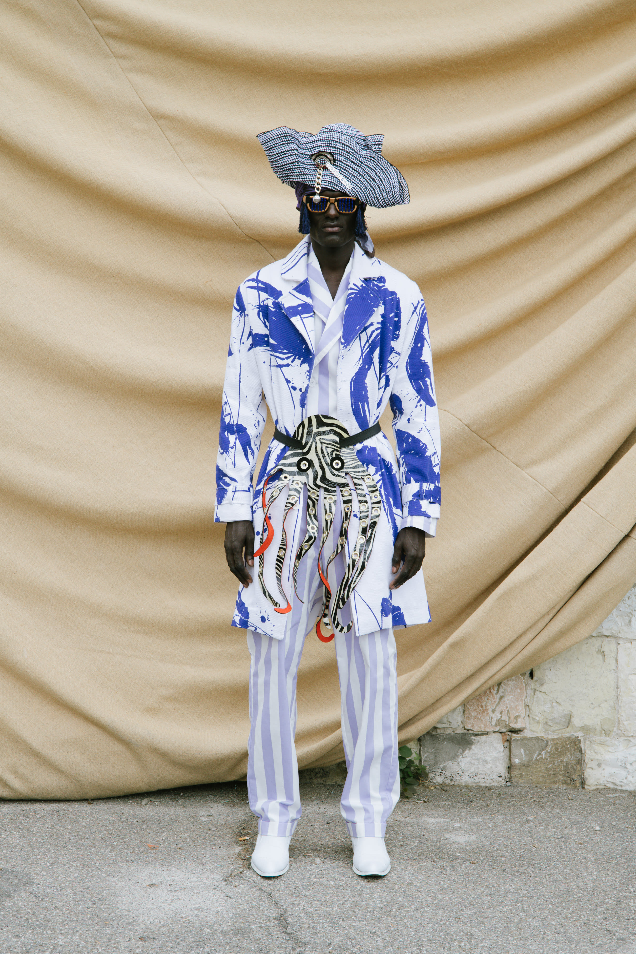It is no accident that Suwannapha has been dubbed “Prince of Prints.” The creative power that comes from his background, combined with an innovative approach to combinations and shapes is a unique celebration of today’s Africa. It brings together traditions, techniques, and details from batik to origami to embroidery. Bold, broad, and squared lines create an experimental androgynous aesthetic that is projected towards the future.