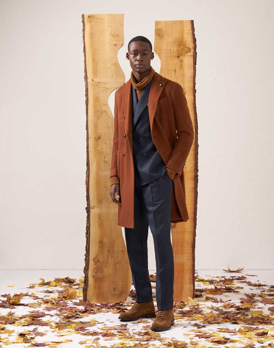 Italian fashion house Lardini combines masculine tailoring with refined silhouettes. Founded in 1978 by the then 18-year-old Luigi Lardini, the brand elevates tried and tested shapes, tweaking them with neat touches and textures, creating a sublime ‘expression of identity’. For its FW 21 collection, Lardini delves into nature and the familiar colors of Fall. A key influence for the collection, American naturalist and philosopher H. D. Thoreau describes the moment that ignited the flame for the collection: